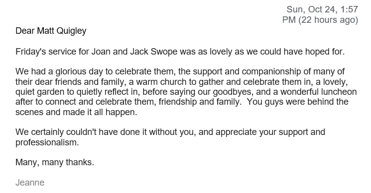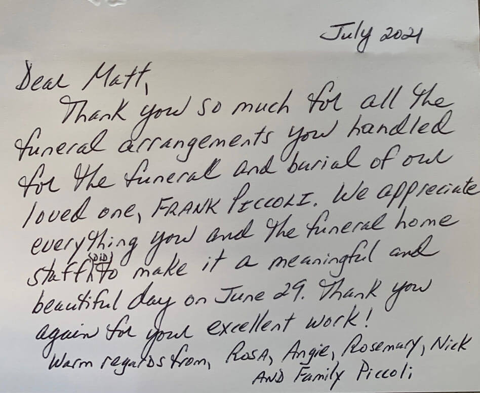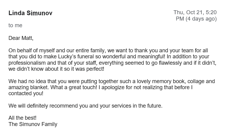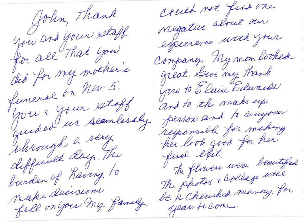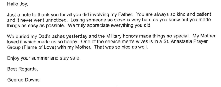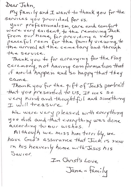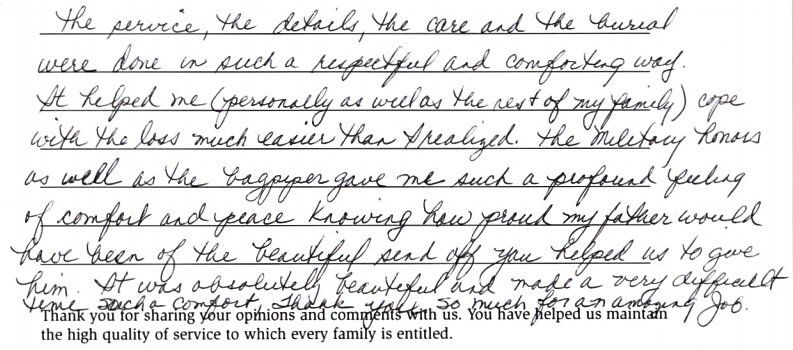 We are always interested in hearing from the families that we serve. Please take a moment to let us know how well we served you in your time of need. We very much appreciate your feedback.